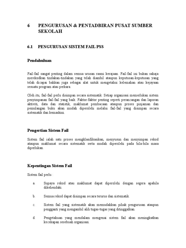 Bab 6 Pengurusan Dan Pentadbiran Pss Pdf
