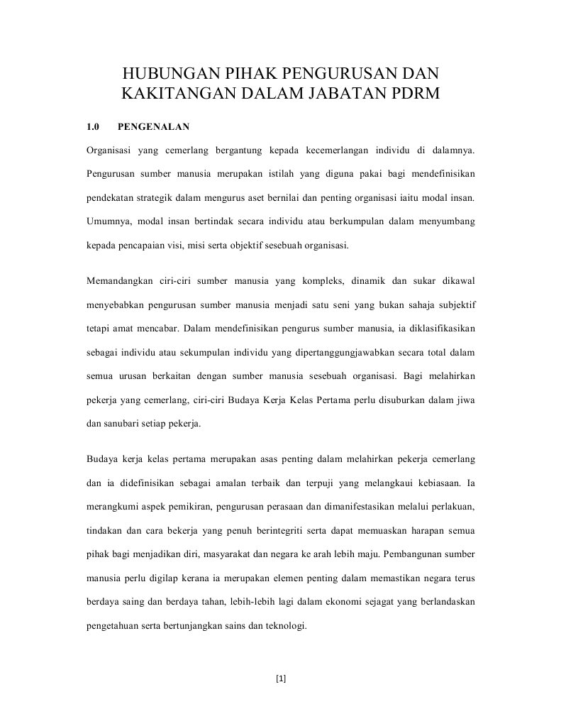 Hubungan Pihak Pen Gurus An Dan Kakitangan Dalam Pdrm Pdf