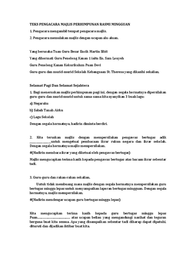 Skrip Aturcara Majlis Perhimpunan Bulanan Kokurikulum. Doc Teks Pengacara Majlis Perhimpunan Permata Merah Academia Edu. 21 Yang berusaha Tuan Guru Besar TuanPuan.