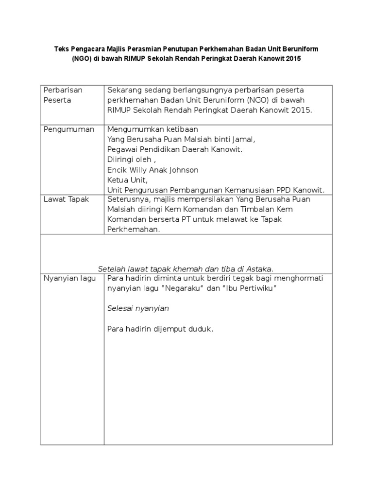 Teks Pengacara Majlis Perasmian Penutupan Perkhemahan Badan Unit Beruniform Pdf