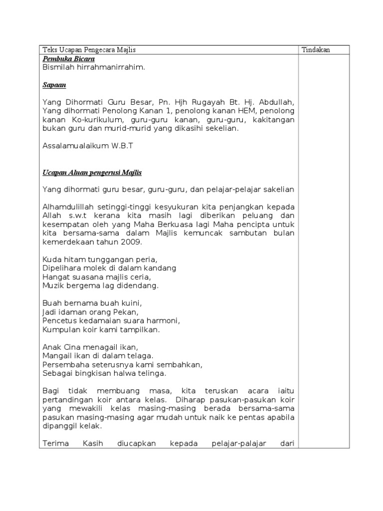 Protokol Teks Pengacara Program 2019 Sekolah Flip Ebook Pages 1 5 Anyflip Anyflip. Related Posts To Teks Pengerusi Majlis Penutup Bulan Kemerdekaan Teks Pengerusi Majlis Penutup Bulan Kemerdekaan 2019-11-21T141600-0800 Rating. Hadirin sekalian bagi meneruskan majlis kita pada hari ini dengan sukacitanya dijemput Yang turut Berusaha Encik Mohd Anuar Bin Selamat Penolong Kanan Kokurikulum SMA Lughatul Quran tampil ke hadapan untuk menyampaikan ucapan dan seterusnya merasmikan majlis penutupan Bulan Kebangsaan Peringkat Sekolah bagi tahun 2017.