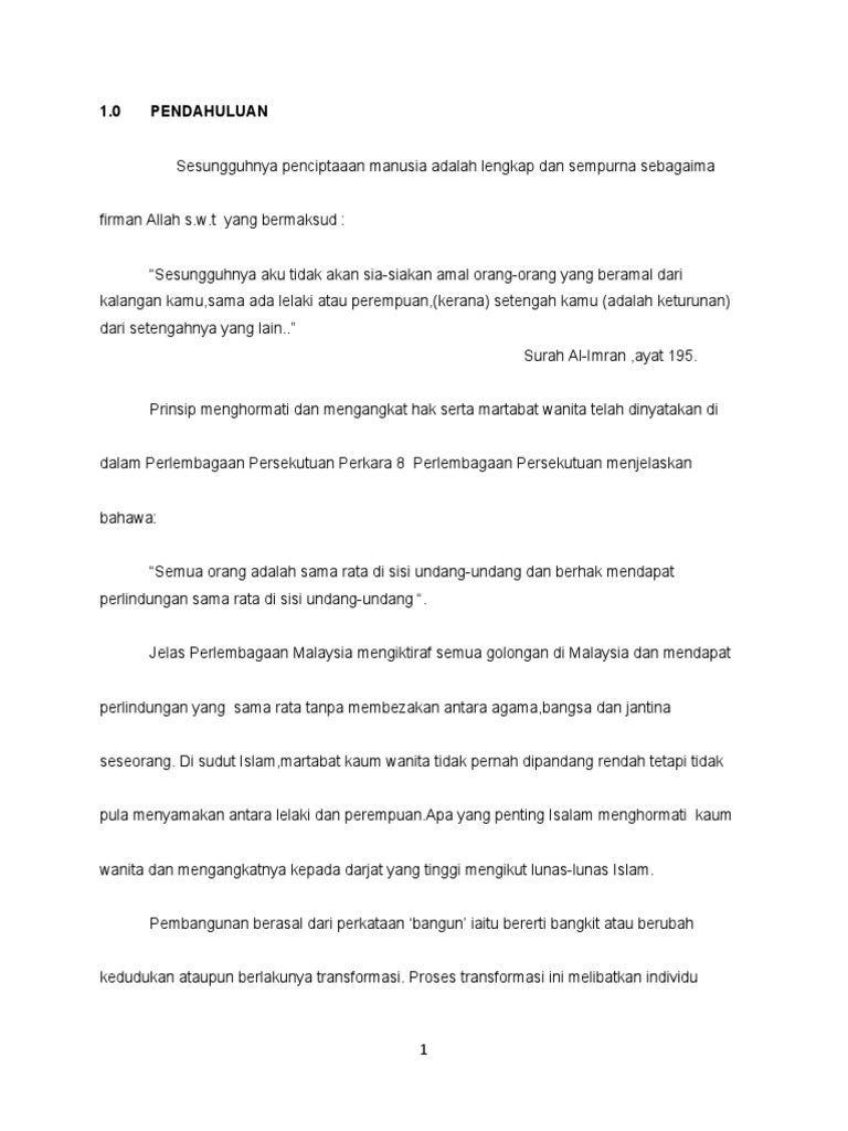 Dasar Wanita Negara Mukadimah 1 Selaras Dengan