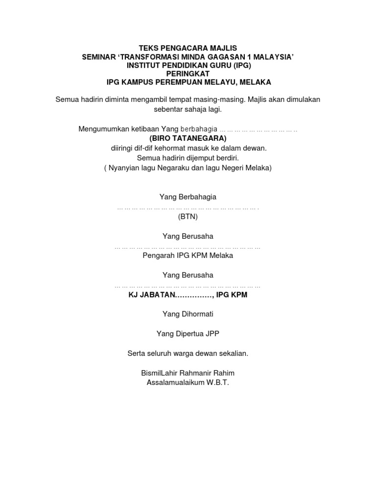 Teks Pengacaraan Majlis Ipg Kpm Pdf