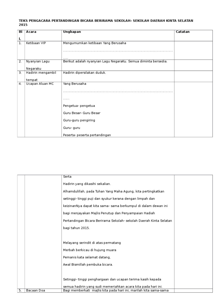 Pihak majlis mengalu-alukan ketibaan para hadirin sekalian ke Majlis Makan. Teks pengacara majlis. Teks mc hari sukan by rose-811001.