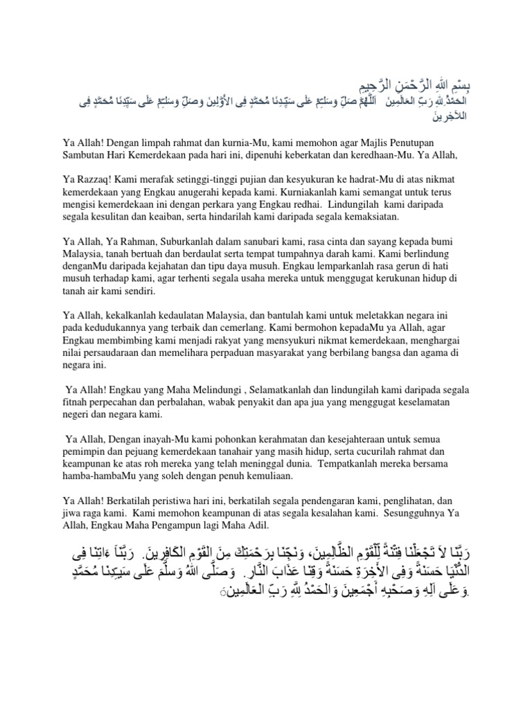 Doa Majlis Penutupan Bulan Kemerdekaan. Doa Upacara Hut Ri Ke 74 Tahun 2019 Informasi Pendidikan Dan Dunia Kerja. Terima kasih juga diucapkan kepada semua murid atas kerjasama yang diberikan bagi mengharmonikan majlis.