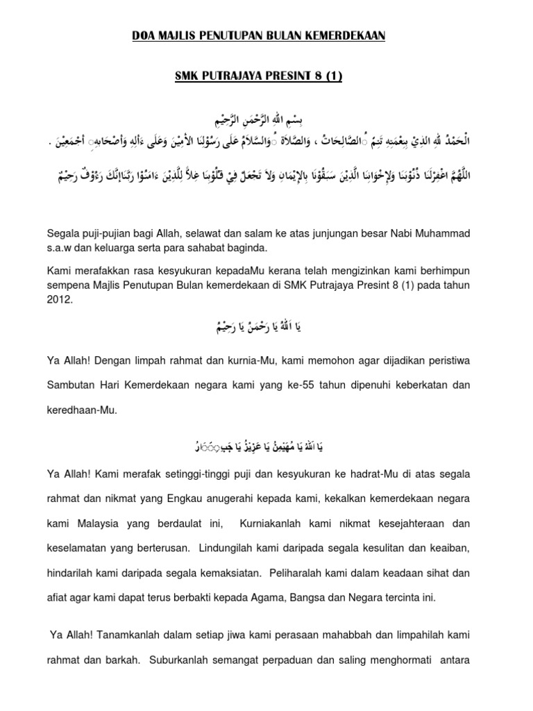 Doa Majlis Penutupan Bulan Kemerdekaan