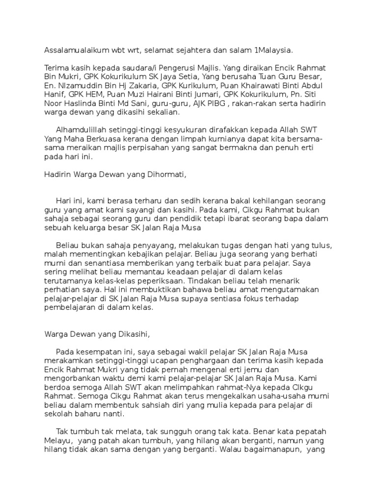 Doc Contoh Ucapan Wakil Murid Untuk Majlis Persaraan Sharina Sharina Academia Edu
